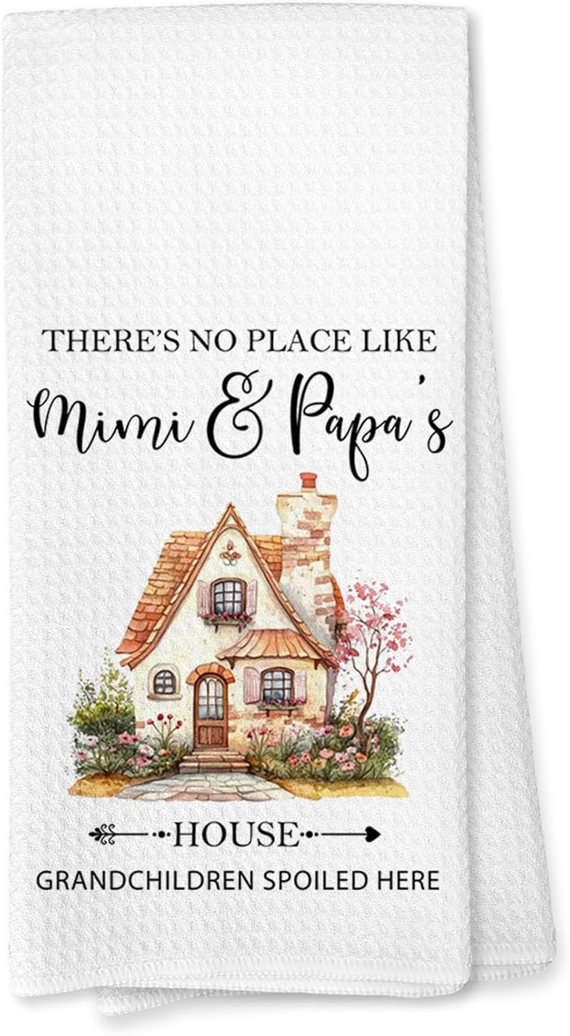 Mimi and Papa Gifts Kitchen Towels, Best Grandparents Gifts Hand Towel for Bathroom Kitchen Decor, Grandparents Grandma and Grandpa Gift from Grandkids Dishcloth Dish Tea Towels, 16x24 Inches