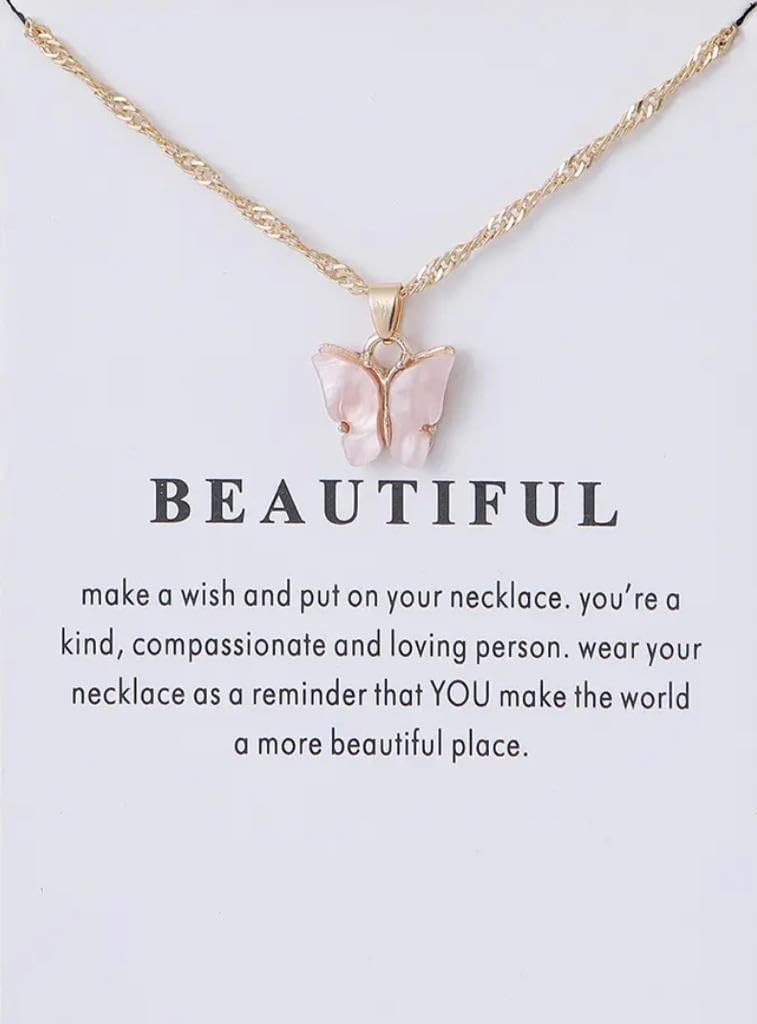 Butterfly Necklace For Women 18K Thin Chain Rose Gold Butterfly Pendant