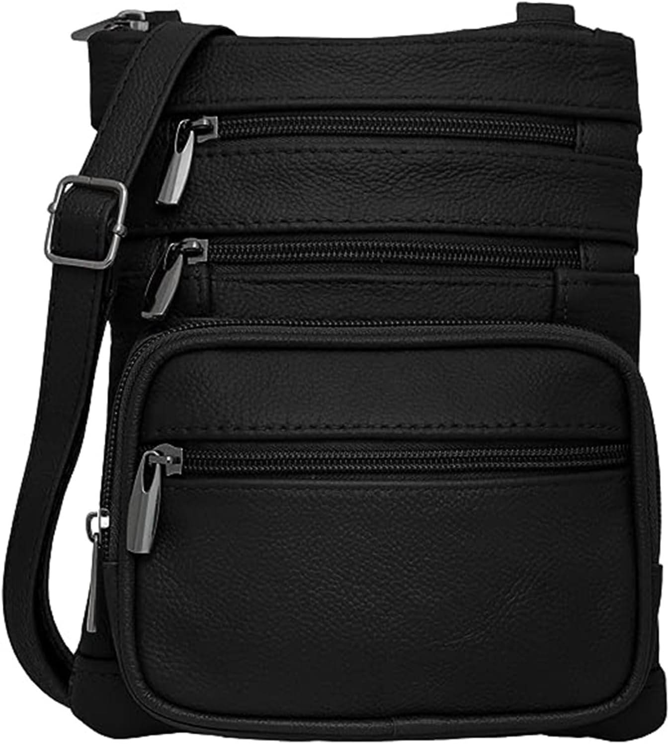 Krediz Leather Crossbody purses for Women - travel bag with 4 Zippers, Soft & Durable Purses for Women Trendy