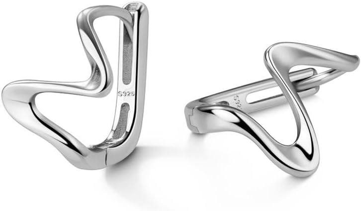 Reffeer Solid 925 Sterling Silver Ocean Wave Hoop Earrings Huggie for Women Teen Girls Minimalist Hoop Earrings Helix Cartilage Hoops
