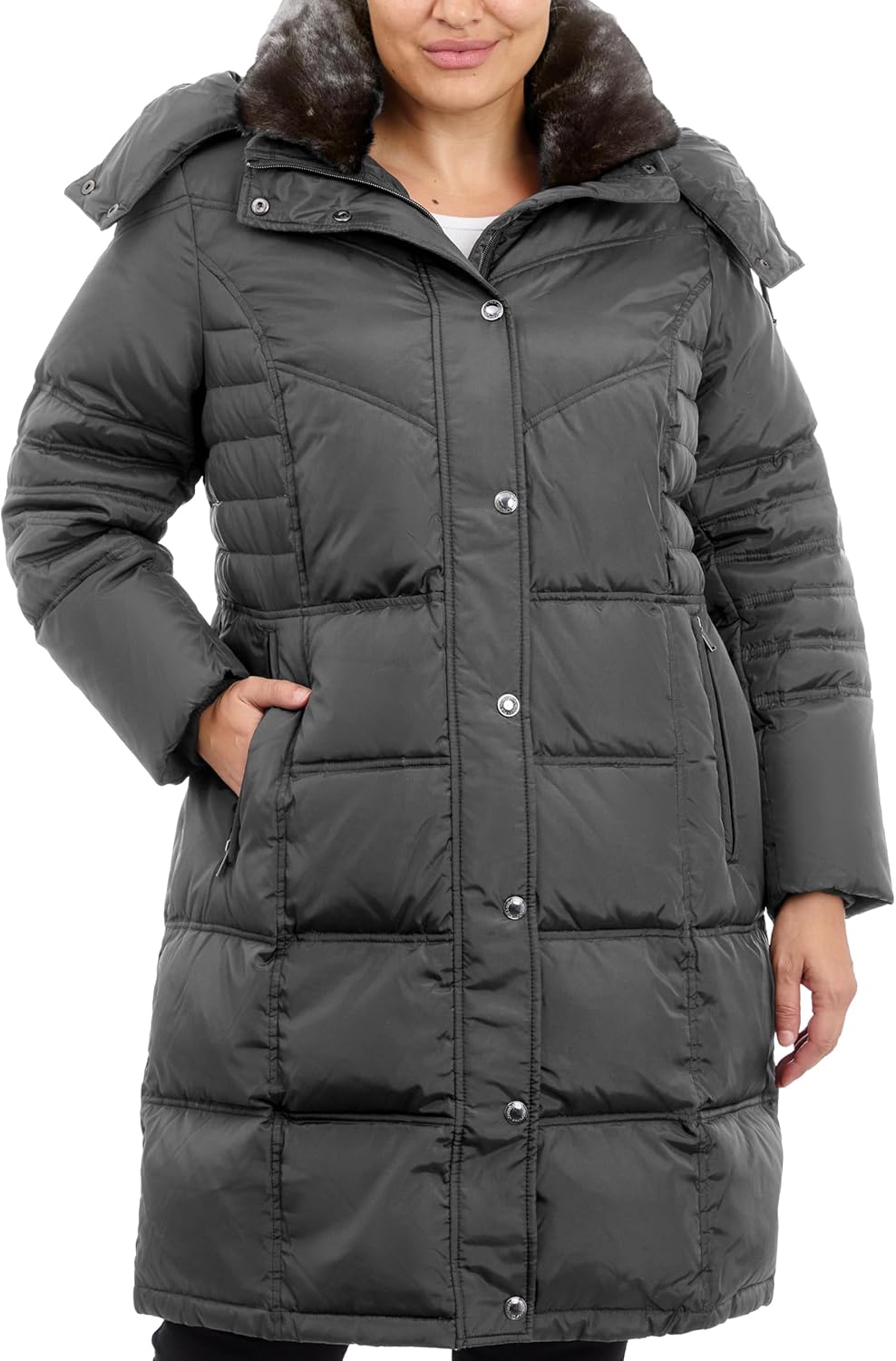LONDON FOG womens Plus-size Mid-length Faux-fur Collar Down Coat With Hood