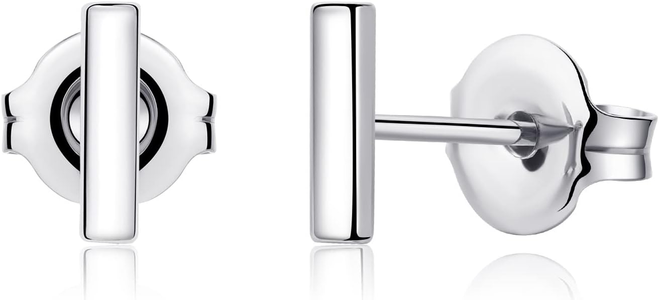 VGACETI Titanium Earrings, Hypoallergenic Stud Earrings for Women Men Sensitive Ears Bar/Butterfly/Triangle/Square Premium High Polished (Shiny Grey)