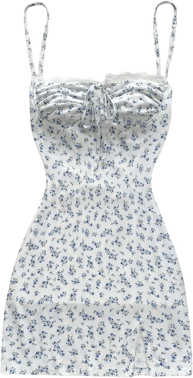 Floerns Women's Floral Tie Front Milkmaid Dress Sleeveless Ruched Bust Bodycon Dresses