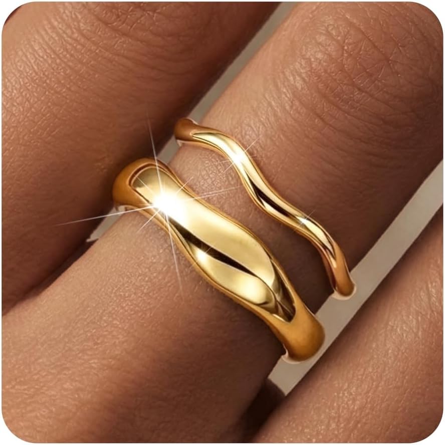 Gold Rings for Women Non Tarnish, Waterproof Chunky 14K Gold Plated Stackable Rings...