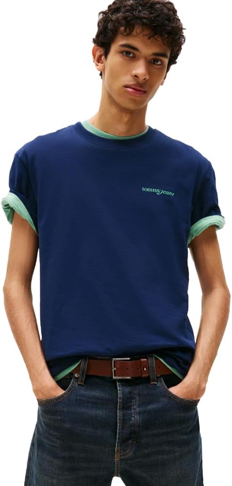 Tommy Jeans Men's Short Sleeve Cotton T-Shirts with Blurred Printed Back Graphic