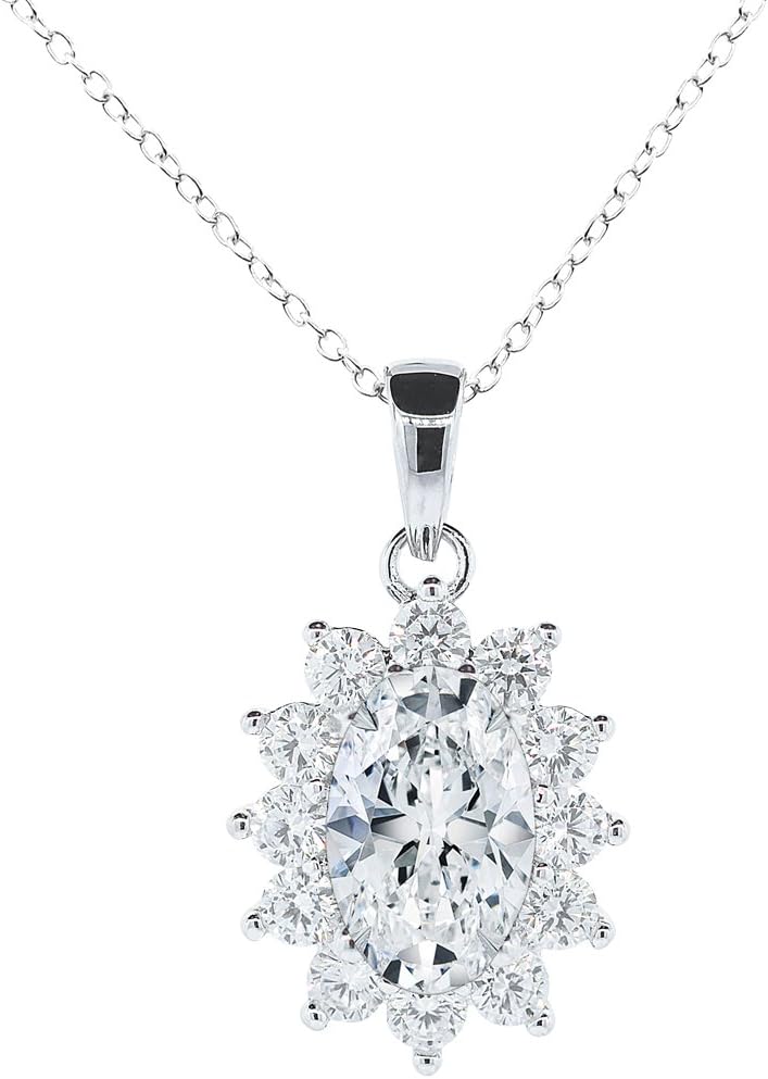 Cate & Chloe Sage 18k White Gold Halo Pendant Necklace with Simulated Diamond Crystals, Elegant Jewelry for Women, Gift for Her