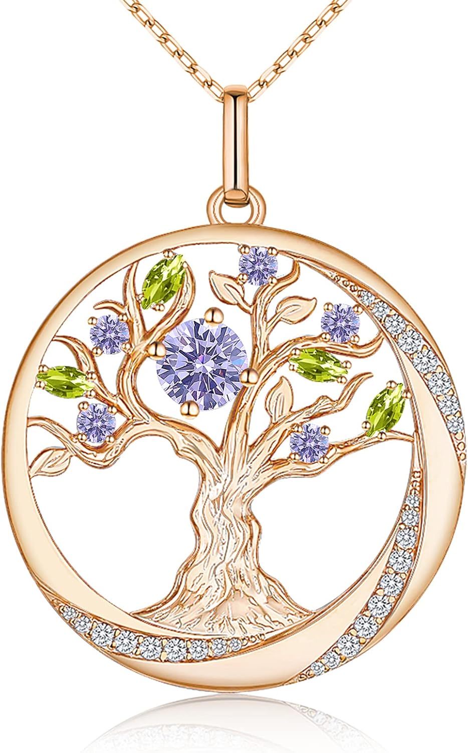 JD & P Sterling Silver Tree of Life Necklace for Women, Cubic Zirconia Birthstone Necklace, Gift Ideal for Her Wife Girlfriend Mom