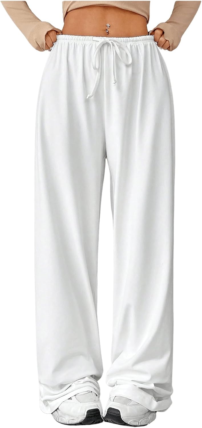 Verdusa Women's Loose Wide Leg Sweatpants Elastic Drawstring Waist Casual Long Pants