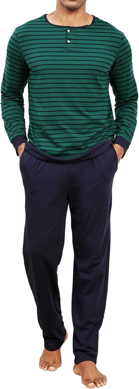 Men's Pajama Set 100% Cotton Mens Pjs Sets Long Sleeve Stripped Top and Pants Sleepwear Lightweight Soft Loungewear
