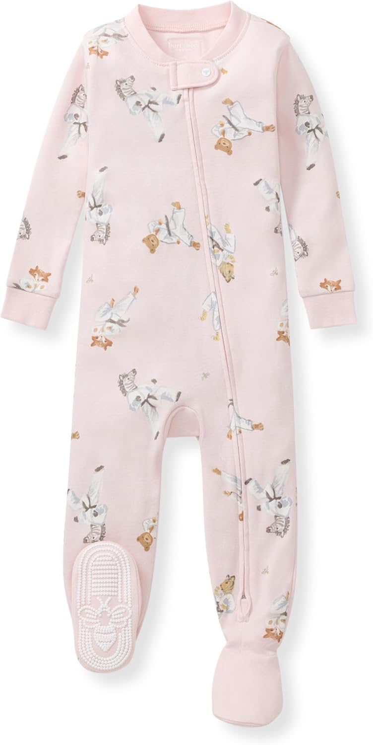 Burt's Bees Baby Baby Girls Sleeper Pajamas, 100% Organic Cotton, One-piece PJs, Diagonal Zip Up Jumpsuit, Snug Fit Footie