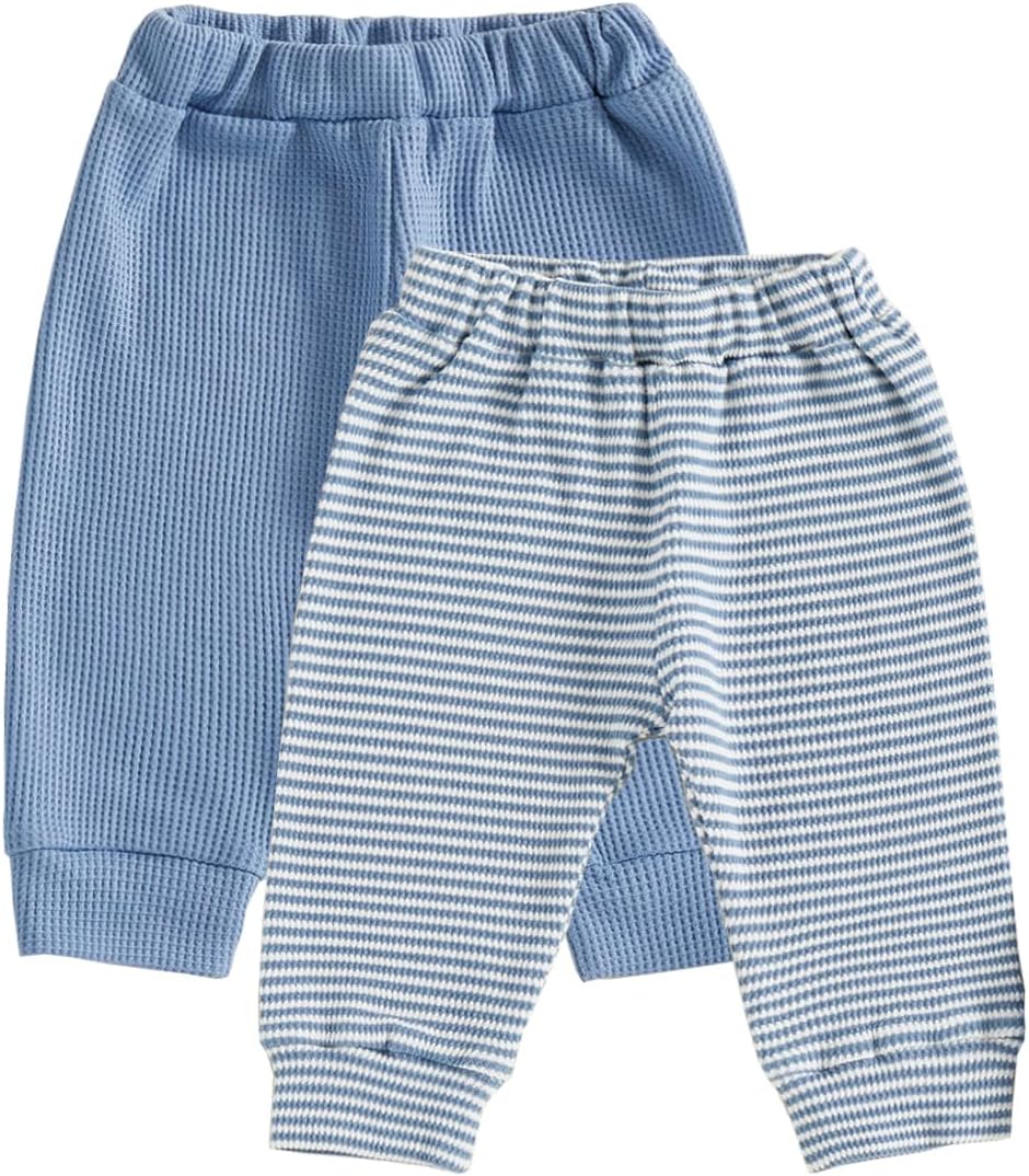Baby Boy 2 Pack Pants Waffle Knit Sweatpants Soft Pull On Jogger Pant Toddler Fall Spring Bottoms