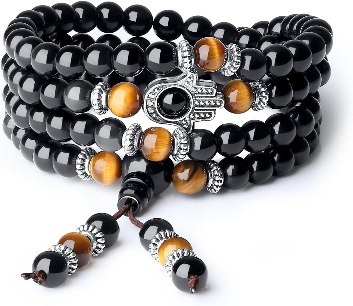COAI 108 Mala Beads Hamsa Hand Bracelet, Wrap Bracelet Beaded Necklace for Men Women