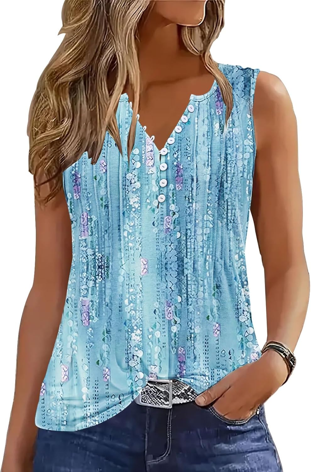 Tank Tops for Women 2026 Summer Top Pleated Shirts Dressy Casual Loose Fit V-Neck Button Down Sleeveless Tshirt Blouse