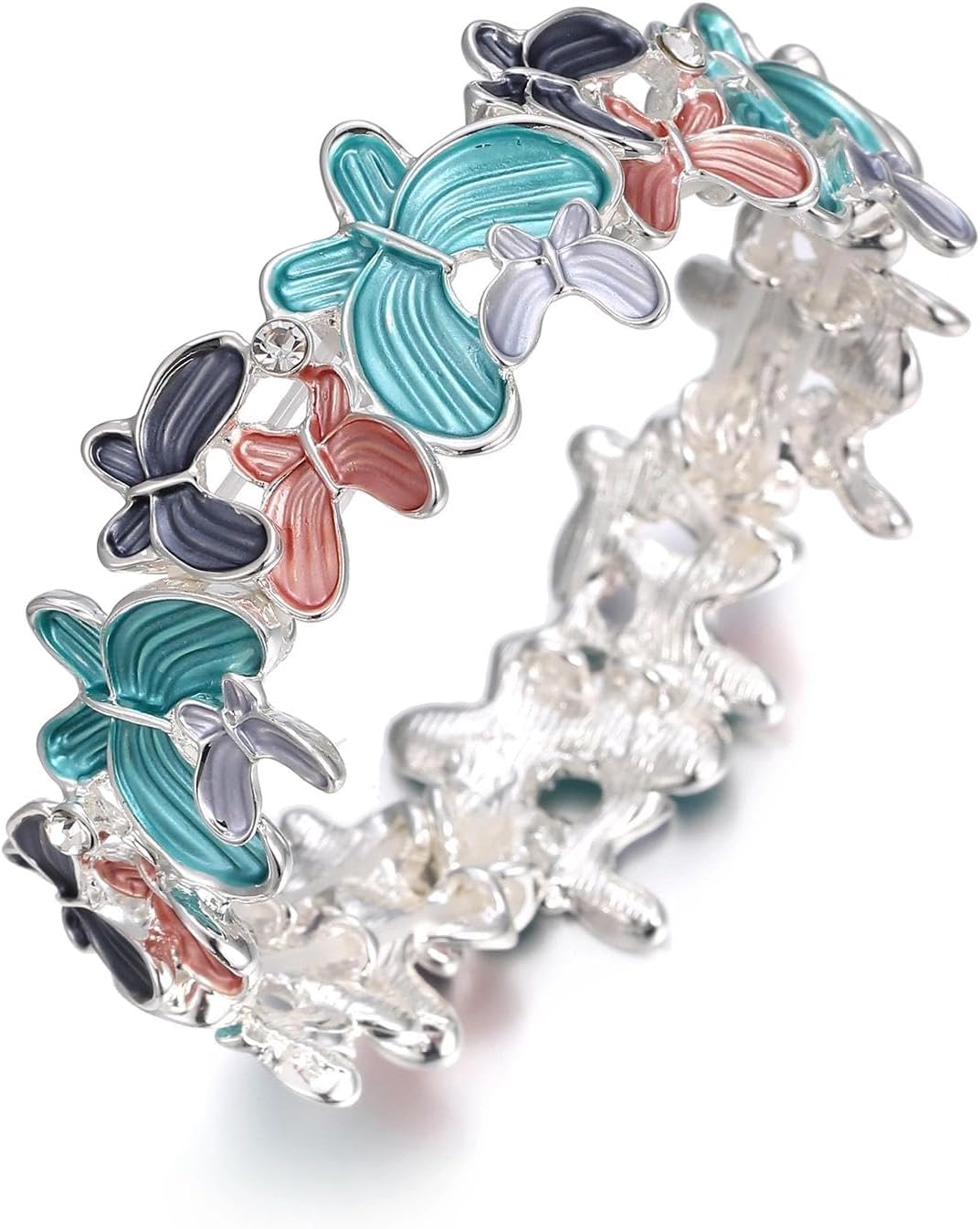 LUREME Vintage Enamel Butterfly Stretch Bangle Bracelet – Adjustable Colorful Boho Elastic Bracelet for Women (bl003620)