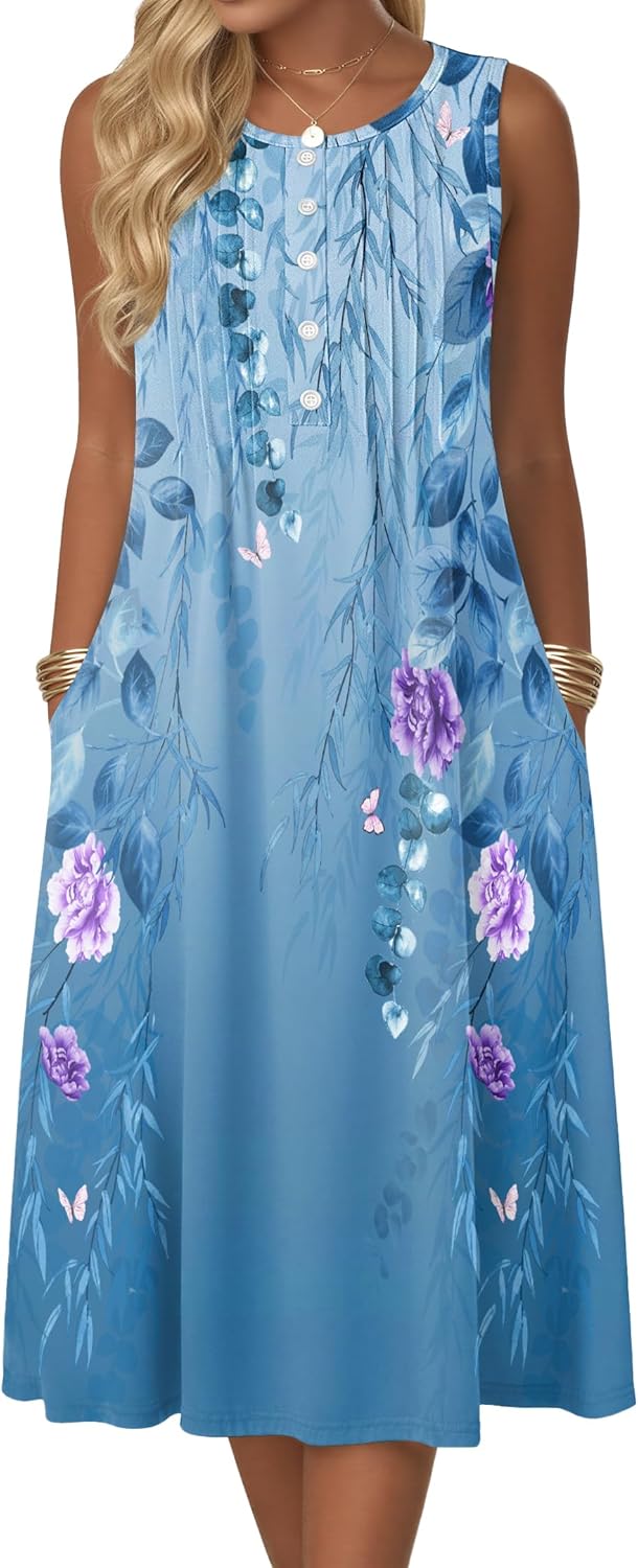 Zeagoo Summer Dresses for Women Flowy Aline Casual Midi Tank Dress Beach Boho Vacation Sundresses Shift Dress with Pockets