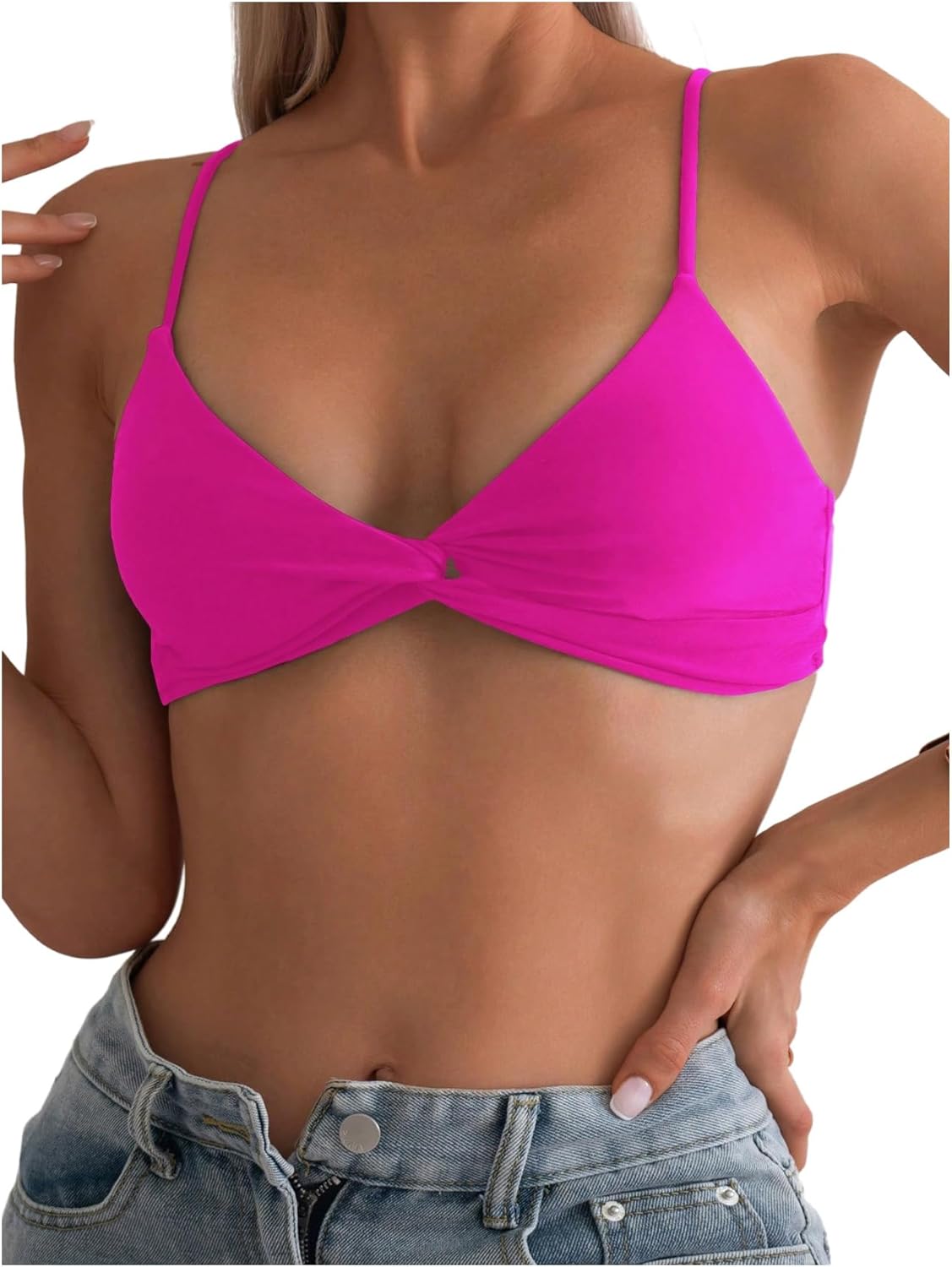 SOLY HUX Women's Twist Front Bikini Top V Neck Spaghetti Strap Swim Tops Bathing Suit