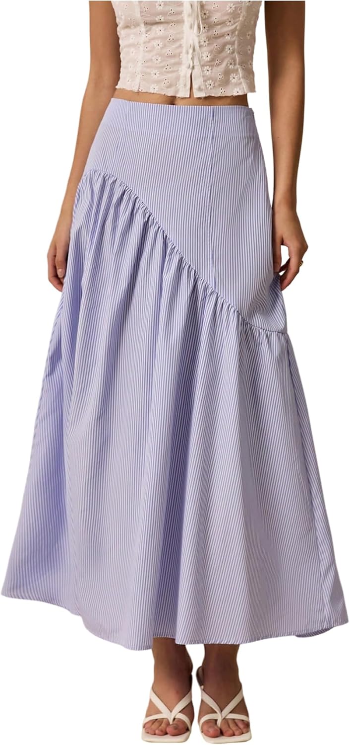 Milumia Women's Striped Print Layered Long Skirt Ruffle Flowy A Line Maxi Skirts