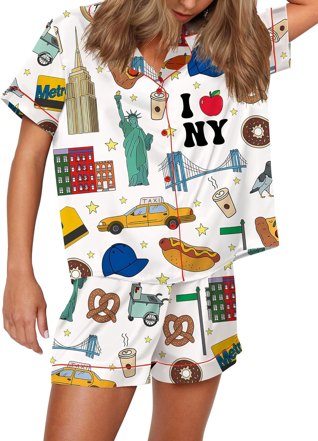 SHESHOW Satin Pajamas for Women Set Satin Button Down Short Sleeve Shirt and Shorts Summer Loungewear Size XS-XXL