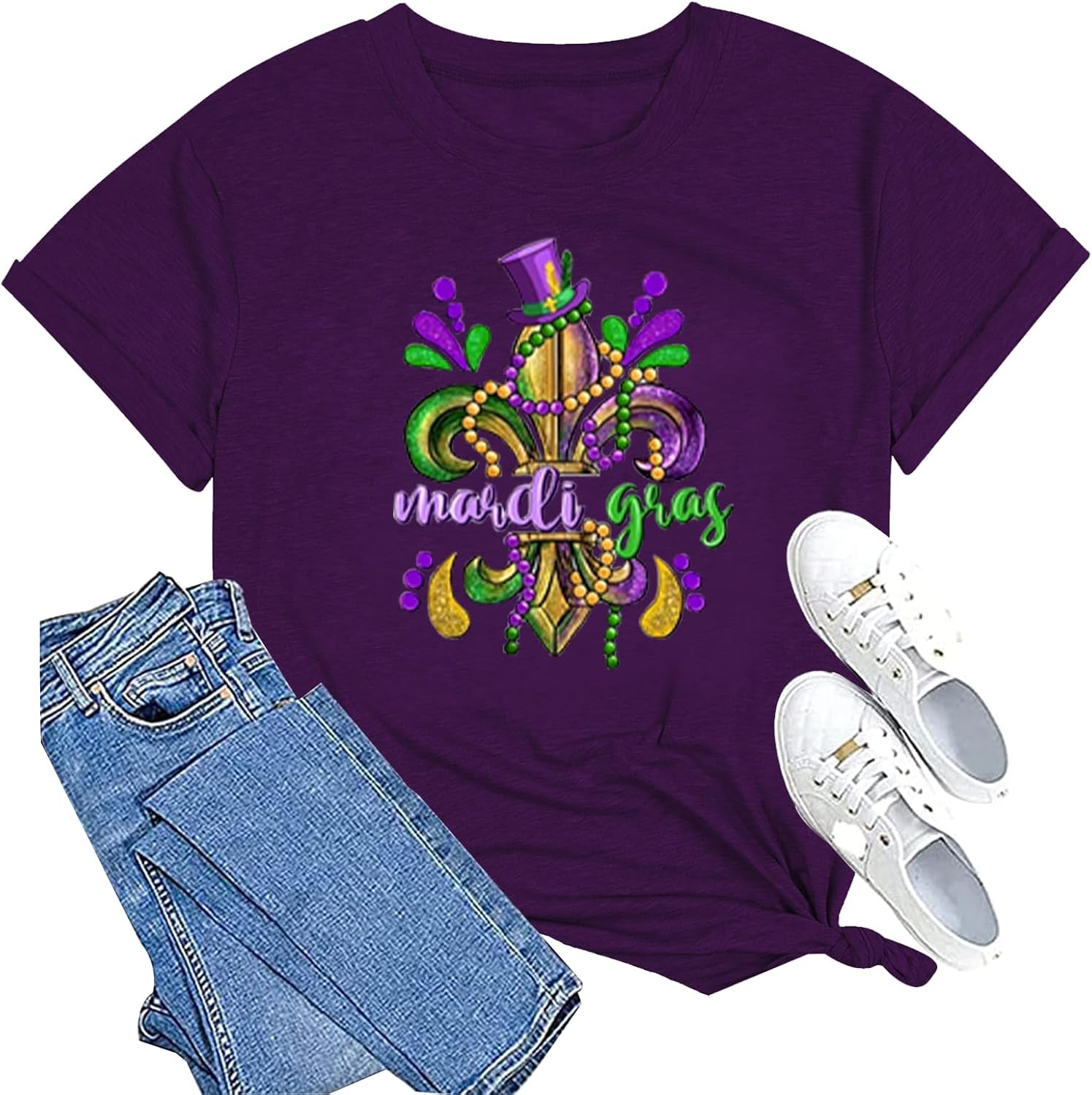 Happy Mardi Gras Shirt for Women Mardi Gras Day Tshirts Funny Carnival Theme Party Tee Tops
