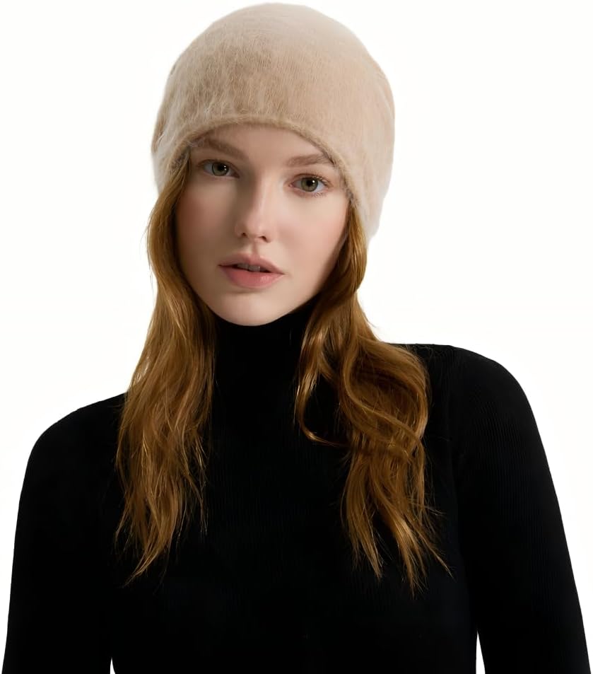 GreenMount Women's 100% Pure Brushed Cashmere Hat Plant Dyeing Warm Soft Winter Knitted Cozy Ski Beanie for Women Gifts