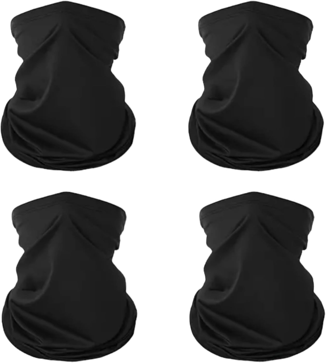 4 Pack Face Mask Neck Gaiter Bandana, Cooling Face Cover Neck Scarf (Black)