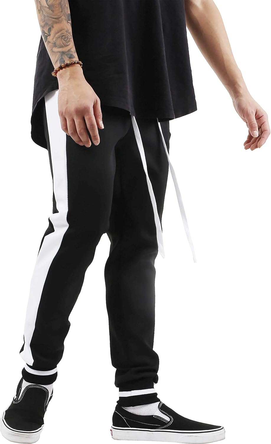 Hat and Beyond Mens Stripe Track Joggers Stretch Skinny Fit Pants