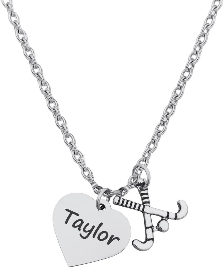 Personalized Engraved Field Hockey Charm Necklace, Field Hockey Stick Pendant Necklace, Gift for Field Hockey Players, Teams and Coaches