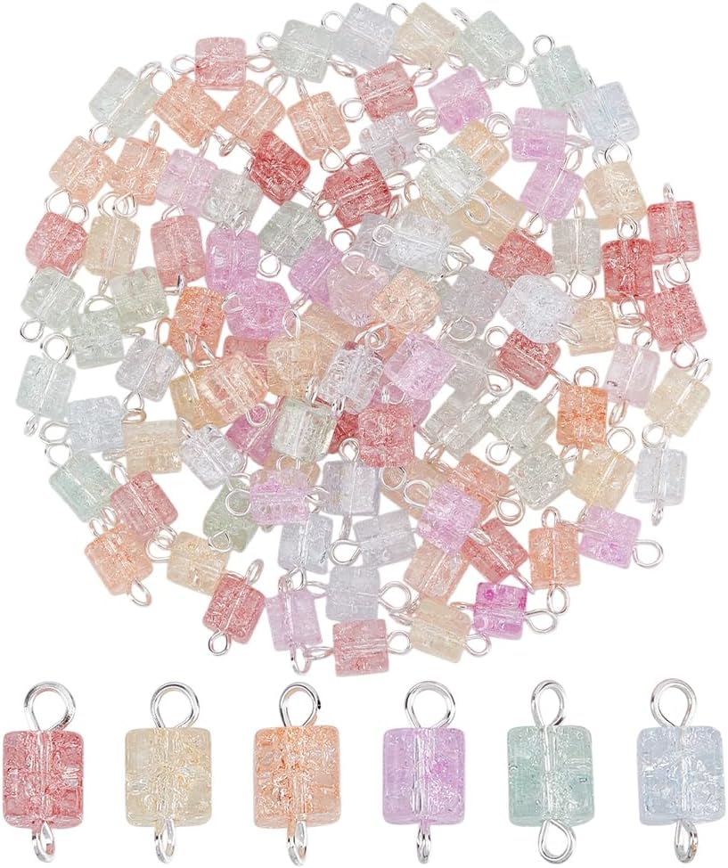 Cracked Glass Charms Cube Connectors Pendants Natural Stone Crystal Dangle Charms with Brass Double Loops for DIY Bracelets Earring Necklace Jewelry Making