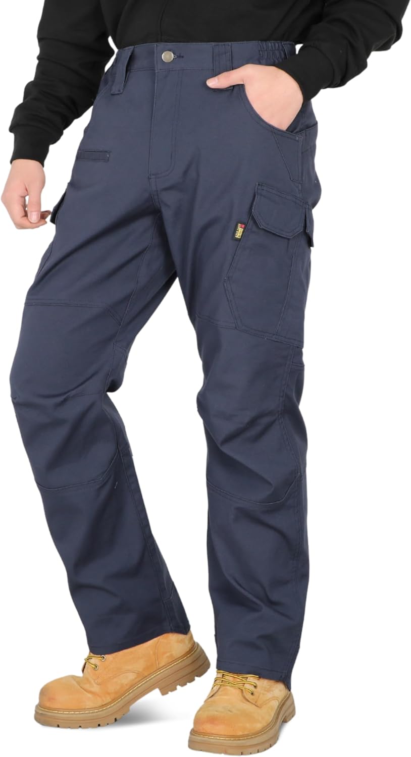 BOCOMAL FR Pants for Men Cargo Pockets Dura-Stretch Rip-Stop Soft Flame Resistant Reinforced Work Jeans Relaxed Fit