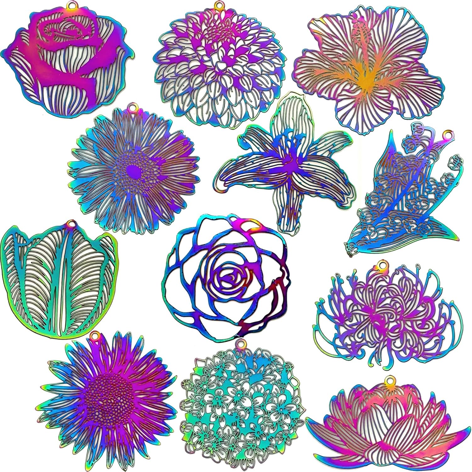 Hollow Plant Charms Multicolor Flower Leaf Filigree Pendants for DIY Earrings Necklaces Bookmarks Hanging Decorations Resin Accessories Jewelry Making Supplies