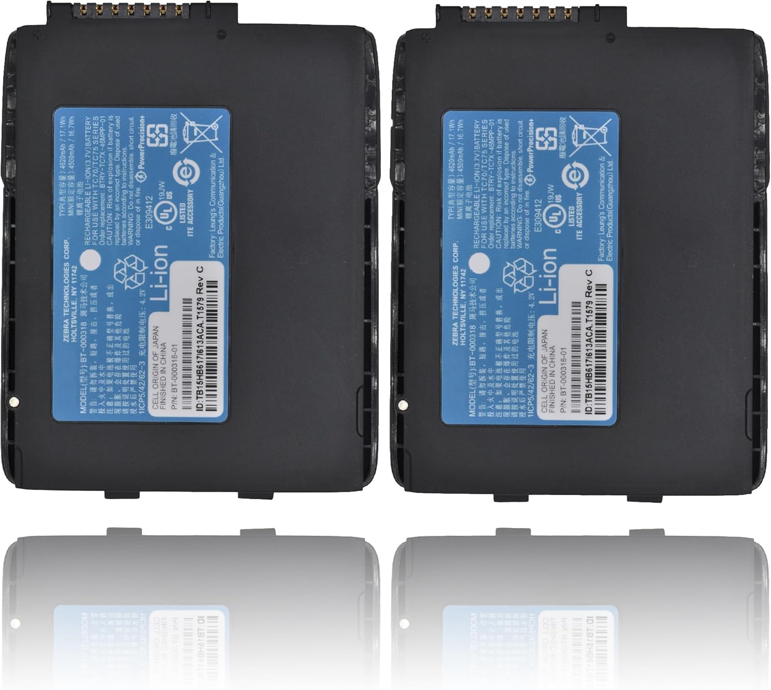 2 Pack BT-000318 Replacement Batteries for Zebra for Symbol TC70 TC70X TC700H TC700K TC72 TC75 TC75X TC75EK TC75AH TC75GK TC77 TC77HL TC20XL BT-000318-01 BTRY-TC70X-46MA1-01 Barcode Scanner Battery
