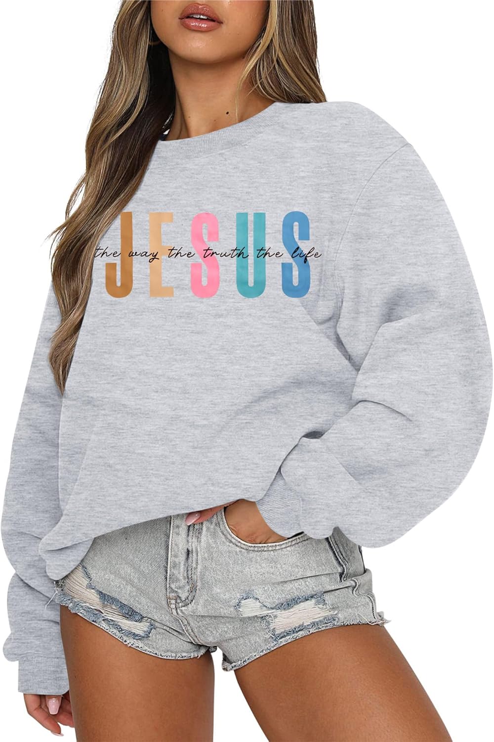 MAXIMGR Jesus Sweatshirt Women Christian Sweatshirts The Way The Truth The Life Christian Sweatshirt Religious Pullover Tops