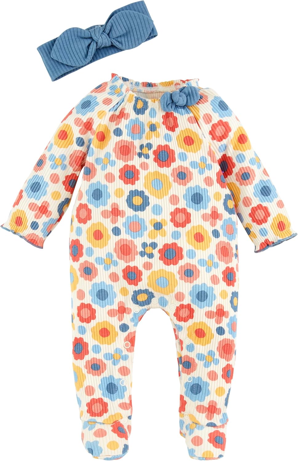 Mud Pie baby-girls Mud Pie Baby Floral Sleeper and Headband Set