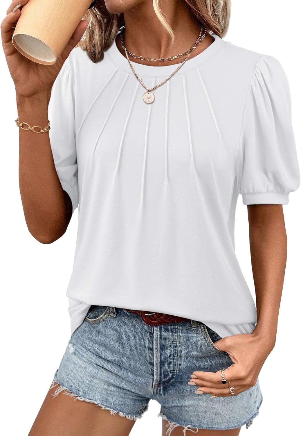 ATHMILE Womens Cute Summer Tops Puff Short Sleeve Shirts Dressy Blouses Trendy Business Casual Outfits