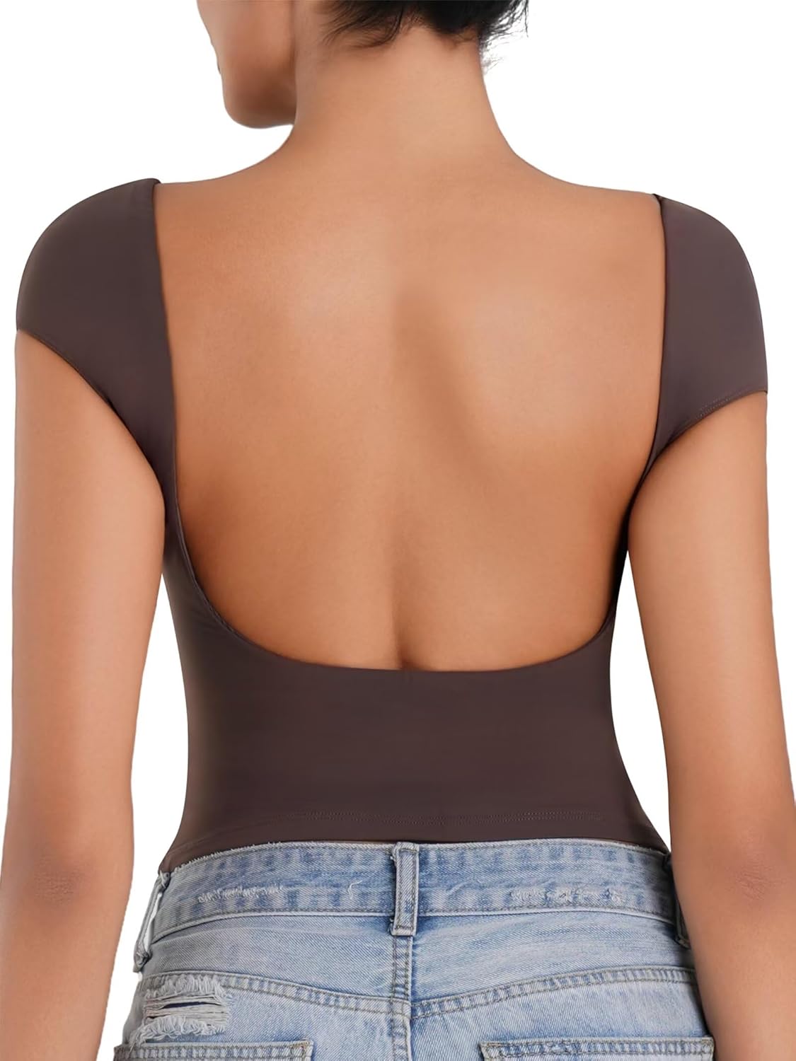 Sunzel Open Back Tops for Women Sexy Going Out Top Double Lined Backless Shirt Y2K Crop Basic Tee Shirts for Casual Workout