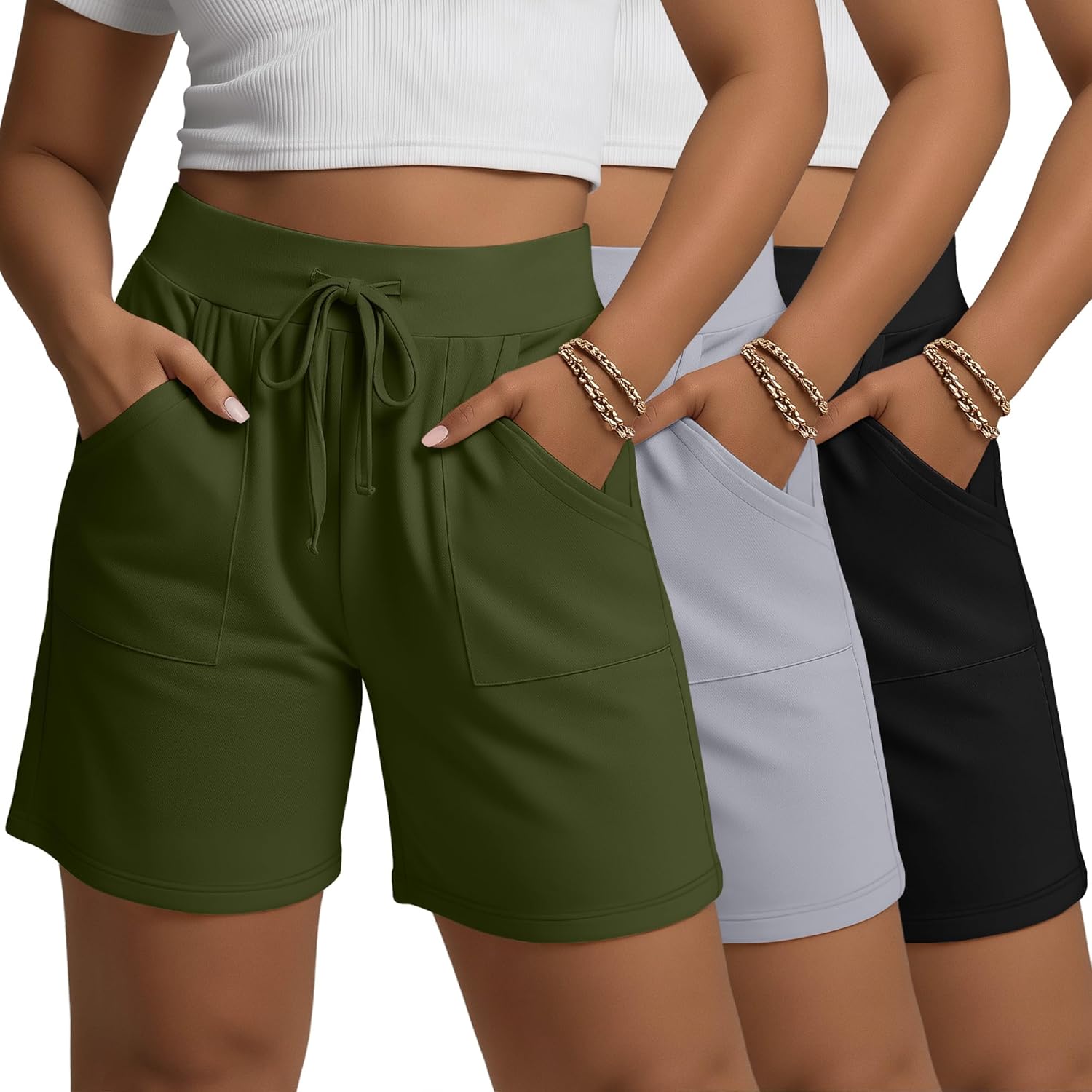 3 Pack Women's Plus Size Bermuda Shorts Drawstring High Waisted Long Yoga Casual Athletic Bottom with Pockets