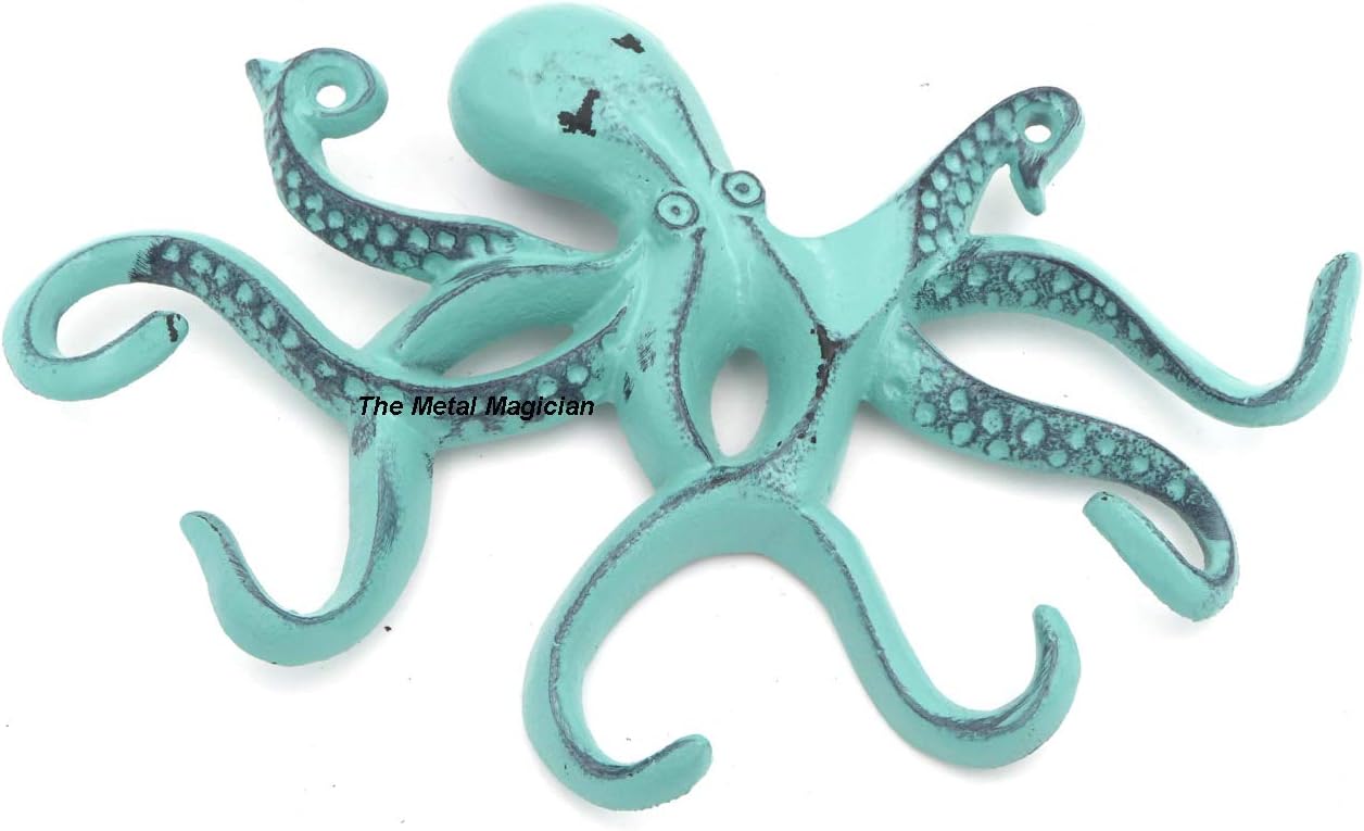Octopus Keys Hook, Decorative Wall Mounted Nautical Wall Rack, Antique Key Holder Hook, Cast Aluminum Hanger for Coat, Hand Towel, Bathrobe, Jacket, Swimming, Kitchen & Balcony (Distressed Green)