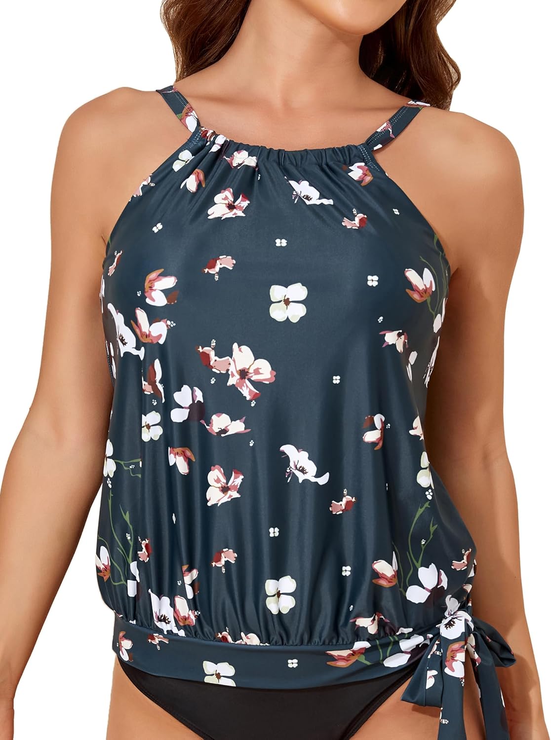 Smismivo Blouson Tankini Tops for Women High Neck Tank Top Bathing Suit Halter Swim Top Padded Swimwear Top Only