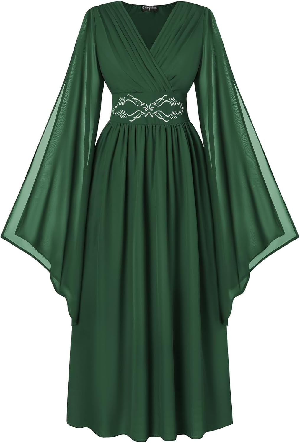 Scarlet Darkness Women's Renaissance Costume Wrap V Neck Medieval Dress Split Bell Sleeve Embroidery Fairy Dresses