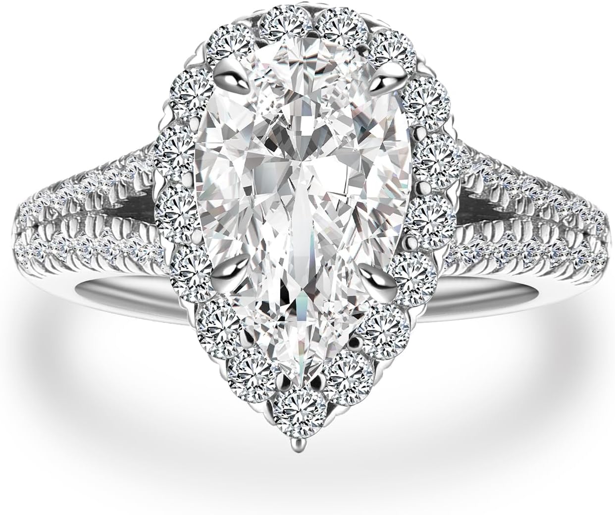 3.5/5.0CT Halo Pear Shaped Engagement Ring,Split Shank Promise Ring for Women in S925 Sterling Silver