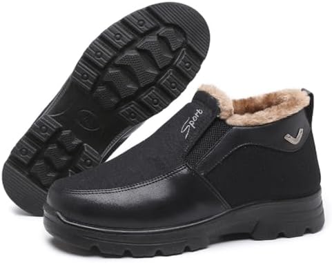 Men's Snow Shoes Casual Slip-on Winter Warm Loafers Shoes Fur Lined Ankle High Lightweight Non-Slip Snow Boots for Elderly Walking