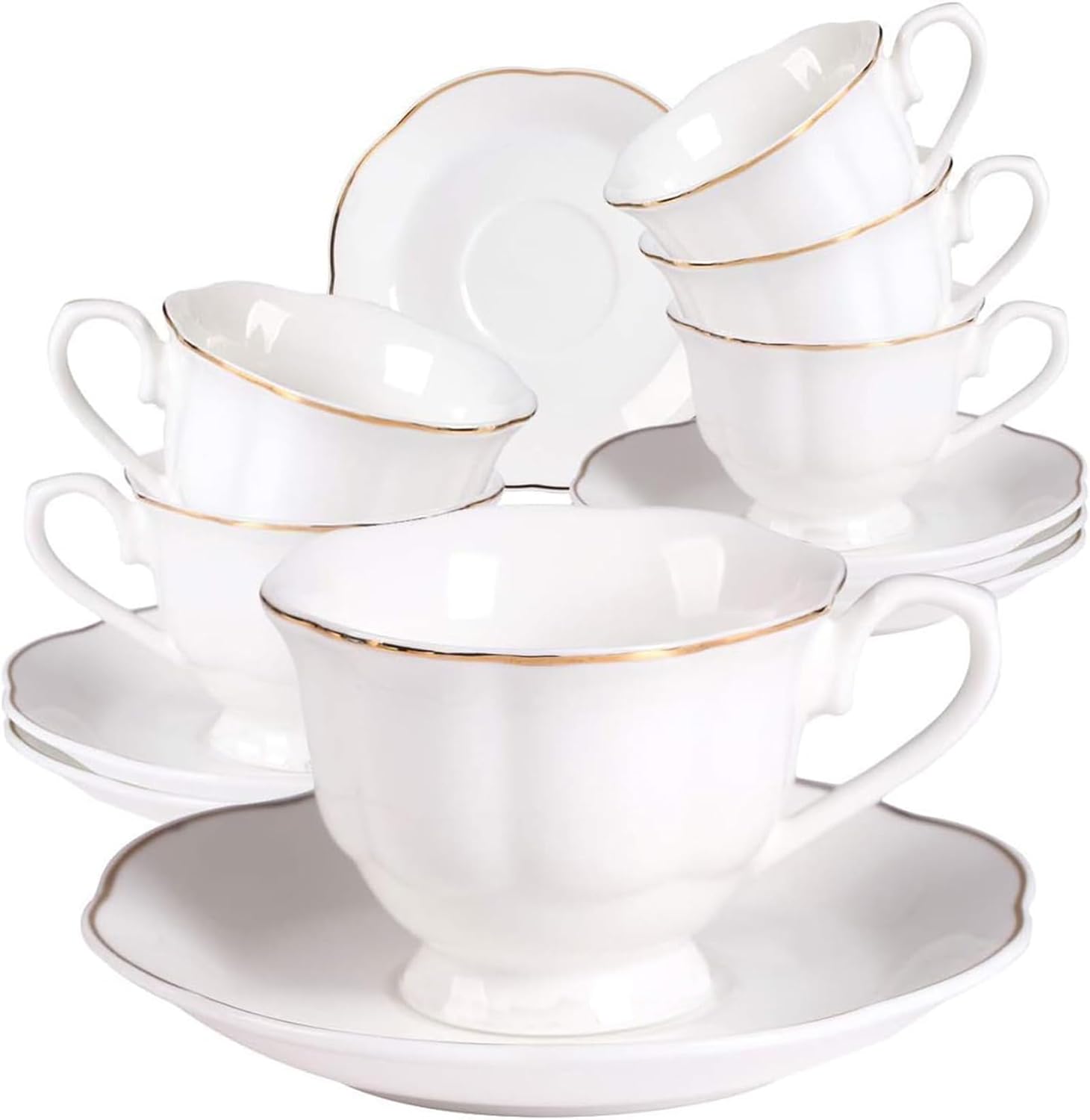 Guangyang 12 Pieces Tea Cup set Fine Porcelain 6oz Cup and Saucer set of 6 for Cappuccino Tea Flat White Coffee