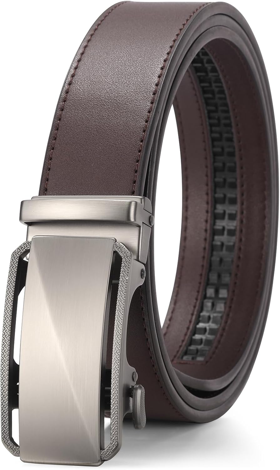 SENDEFN Men's Leather Belts 1 3/8" Automatic Ratchet Belts Adjustable Casual Buckle Belts for Dress with Gift Box