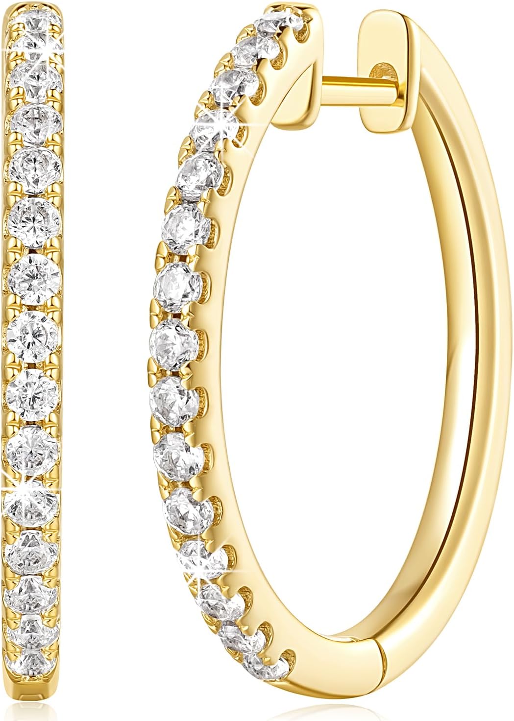 14K Gold Hoop Earrings Diamond Hoop Earrings for Women’s Huggie Earring with Sparkling Cubic Zirconia Small Hoops Earring 25mm