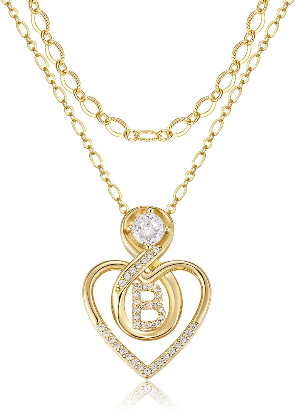 Heart Letter Necklaces for Women 14K Gold Plated Cubic Zirconia Heart Initial Layered Necklace Infinity Pendant Necklace Letter Initial Jewelry for Women