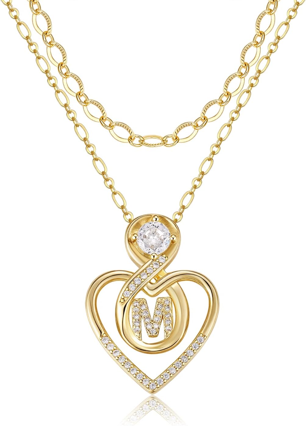 Heart Letter Necklaces for Women 14K Gold Plated Cubic Zirconia Heart Initial Layered Necklace Infinity Pendant Necklace Letter Initial Jewelry for Women