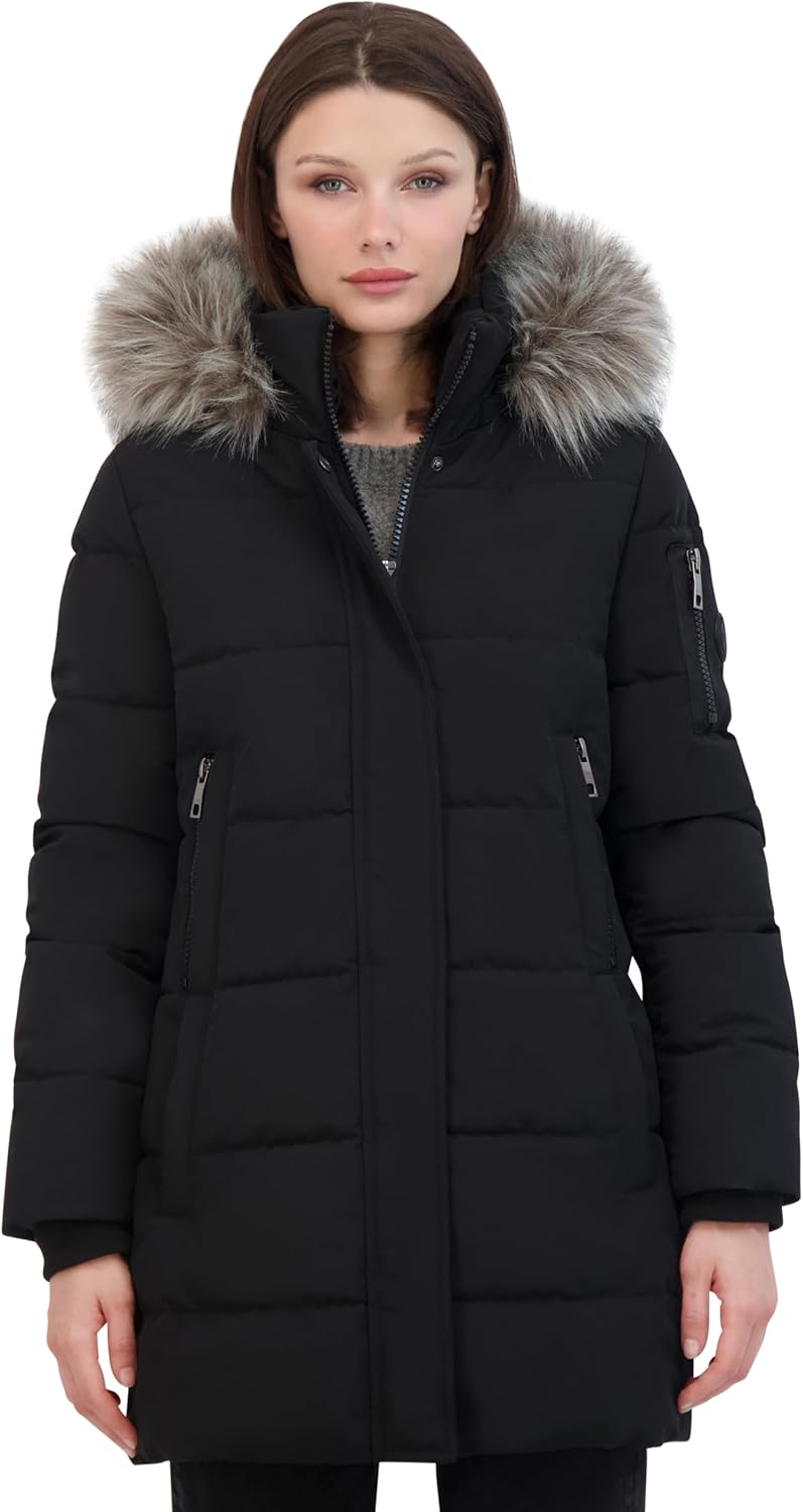 Nautica womens Soft Mist Heavyweight Puffer Coat– Winter Jacket With Detachable Faux Fur Hood