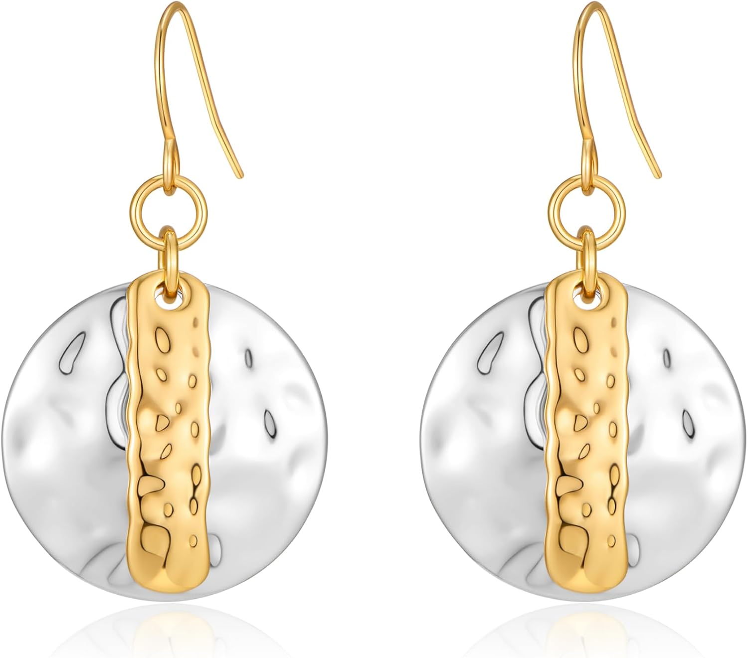 MUYAN Gold and Silver Boho Hammered Dangling Earrings for Women Modern Statement Finish Dangle Drop Earrings Jewelry