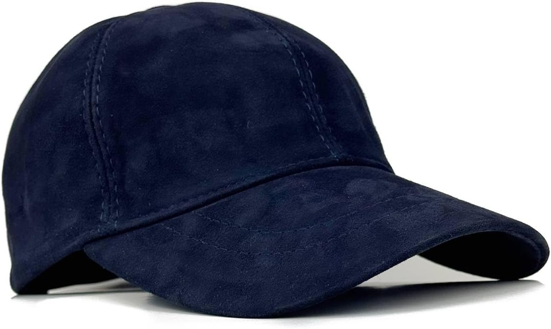 Unisex Genuine Suede Leather Baseball Cap, Vintage-Style Adjustable Strap Hat for Men & Women, One Size Fits Most