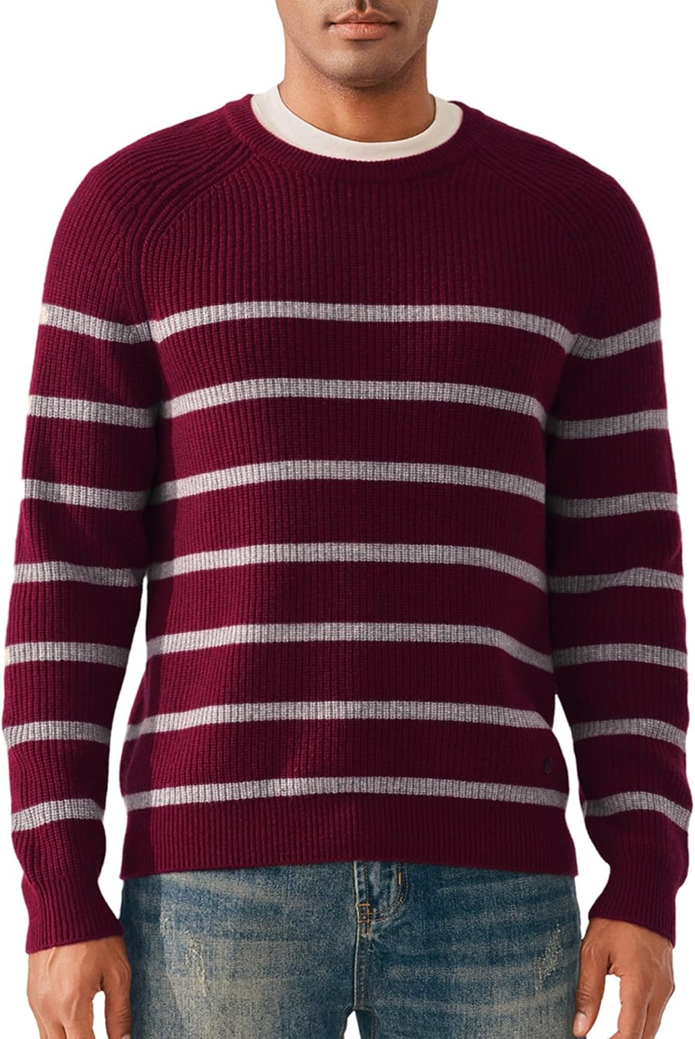 KVSS Men's Crewneck 100% Pure Cashmere Sweater, Pullover Cashmere Sweaters for Mens with Stripes | Luxury from Inner Mongolia
